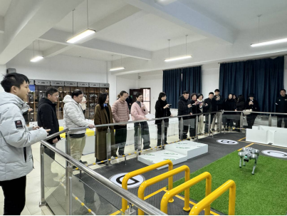 人工智能实验室的参观将交流活动推向高潮。实验室集中展示了包括智能四足机器人、仿生双足机器人和智能工程车在内的多项创新成果。学院师生现场演示了机器人的高动态运动控制、复杂步态规划等高难度技术应用。代表团成员频频驻足观看,对学院先进的实验设备和员工的创新能力赞不绝口。